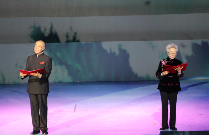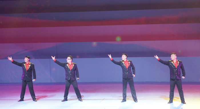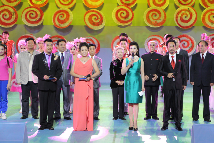 主持人(左起:张旺、穆红、刘小娜、刘劲)谢幕 |