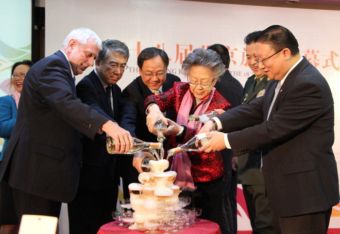国家新闻出版广电总局副局长童刚、国家新闻出版广电总局电影局局长张宏森、国家新闻出版广电总局电影局副局长栾国志、中国电影集团公司董事长焦宏奋、中国电影股份有限公司董事长喇培康、国家新闻出版广电总局电影卫星频道节目制作中心主任曹寅、华夏电影发行有限责任公司董事长傅若清、中国电影海外推广公司负责人谷国庆、中影集团进出口分公司总经理肖萍等主办单位及承办单位领导出席了本次开幕式。出席活动的还有长影集团总经理毕述林;中央电视台副台长高峰;天津北方电影集团董事长张仁刚、王大方;河北影视集团董事长申晓义;八一电影制片厂副厂长颜品、安澜;电影家协会秘书长饶曙光;IDG总裁熊晓鸽;阿里巴巴影业张强;阳光传媒集团董事长吴征;阳光媒体投资控股有限公司主席杨澜;万达文化产业副总经理叶宁;星美影业集团董事长覃宏;总后勤部金盾影视中心主任张伟;北京中侨联影视集团主任赵鹏;中国文化国际传播研究院院长黄会林教授;著名导演陈力;光明日报文艺部副主任、《洋妞到我家》编剧李春利及著名表演艺术家:孙海英、孙维民、巩汉林、丁柳元、温心、苏丽、赵晓明、潘婕等众多制片方代表及蒙特利尔国际电影节主席骆赛克、意大利远东国际电影节主席芭拉赛蒂、中美电影节主席苏彦韬、巴黎中国电影节主席高淳芳、奥斯卡评委安德鲁·摩根等500余位海内外嘉宾。