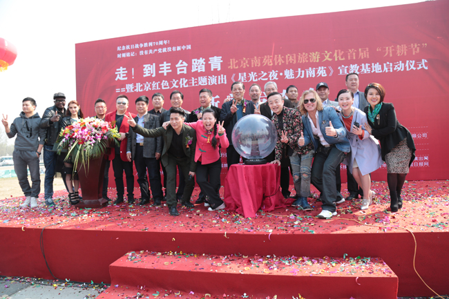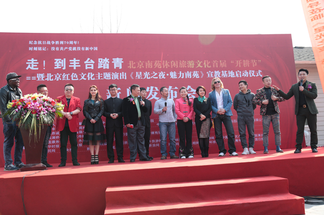3月26日,北京市南苑休闲旅游首届“开耕节”暨北京红色文化主题演出《星光之夜 魅力南苑》新闻发布会在丰台南苑村国际露营公园隆重召开,此次活动由中国人民解放军总后勤部金盾影视中心,北京红宝典文化传媒有限公司主办,南苑村协办。博林,高原主持此次发布会,原河北军区司令、现中国国际防患战略委员会主席,戴凤绣司令,全国人大秘书局原局长王培英,商务部原部长周可仁,中央电视台新闻中心主任张秋航,中央警卫副局长于忠禄,总参陆航司令于 进海,中国音乐协会理事付林,解放军总后勤部金盾影视中心主任李学政、张伟、房瑞良,中央机关书法创作基地主任路文波。丰台区文联主席李彭,国际露营公园总经理赵环宇、北京环渤海旅游联合会会长贾建国,北京易游假期旅旅行社董事长郭月晨。明星嘉宾有:星光大道冠军刘大成,王旭,草帽姐,于欣,好弟,云飞,吉米,春天,张地,吉星,著名相声演员何军,著名歌手王源,及丰台区、乡各级领导共同参与了本次发布会。 依据园区的八大项目主题特色,组件完善的多样性的商业集群。告别从前的单打独斗,实现特定产业中的彼此分工合作,以整体带动局部的发展。 该旅游街集全国“红色革命根据地”的特色工艺产品,旅游产品,节庆产品,儿童产品,特色名吃,特色土特产等为一体的步行旅游街,我们全方位的立体式设计,融合全部可视、可听、可感、可触的设计元素为你搭建好最具特色。最具人性化,最具服务性的平台,只等你的到来。 北京星光红宝典文化传媒有限公司投巨资在星光影视园区打造一台大型常态演出《星光之夜》以红色经典主题为基础,邀请众多从《星光大道》成名的草根明星加盟演出,于2014年12月27日在人民大会堂进行首演,整场晚会气势恢宏,旋律优美,传统与时尚并重,经典与流行纷呈,极富艺术感染力与心灵震撼力,令人荡气回肠。《星光之夜》旅游常态演出将丰富北京的旅游产品,盘活丰台区的旅游资源,成为国内外游客北京之旅新的选择。