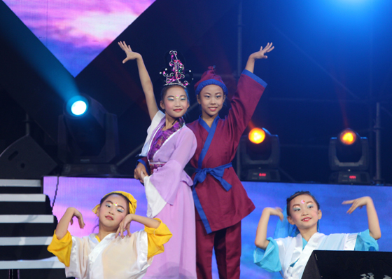 张润霞与湖北省郧西县七夕艺术学校的小朋友在一起 在这次专场文艺演出晚会上,吉林卫视《放歌中国》栏目组还录制了中国人民解放军总后勤部金盾影视中心创作的歌曲《秦风楚韵话人间》,青年歌手张美晨现场演唱,歌曲优美动听,使人心旷神怡。同时,本次晚会还特别邀请了中央电视台发现之旅频道栏目组和湖北省郧西县七夕艺术学校老师及60多个孩子,七夕艺术学校的孩子们也参加了文艺晚会节目的录播活动,演出了精彩的节目《永远的天河》,为观众展现出了孩子们活泼可爱的舞蹈艺术风采。